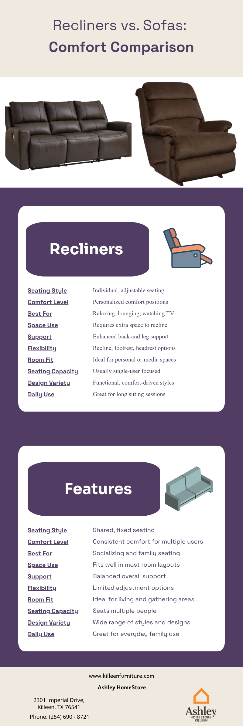 Recliners vs. Sofas: Comfort Comparison January 15, 2026 centexseoadmin Living Room Furniture Killeen VIEW PDF ReclinerSofa Please Share This Tweet Share Plus one Pin It Related Posts How To Furnish Your Living Room At A Budget View Full Image Different Ways To Set Up Sectional Sofas View Full Image How to Use a Loveseat In Living Room Decor? A loveseat is a piece of furniture that is essentially considered a mini-sofa or wide…